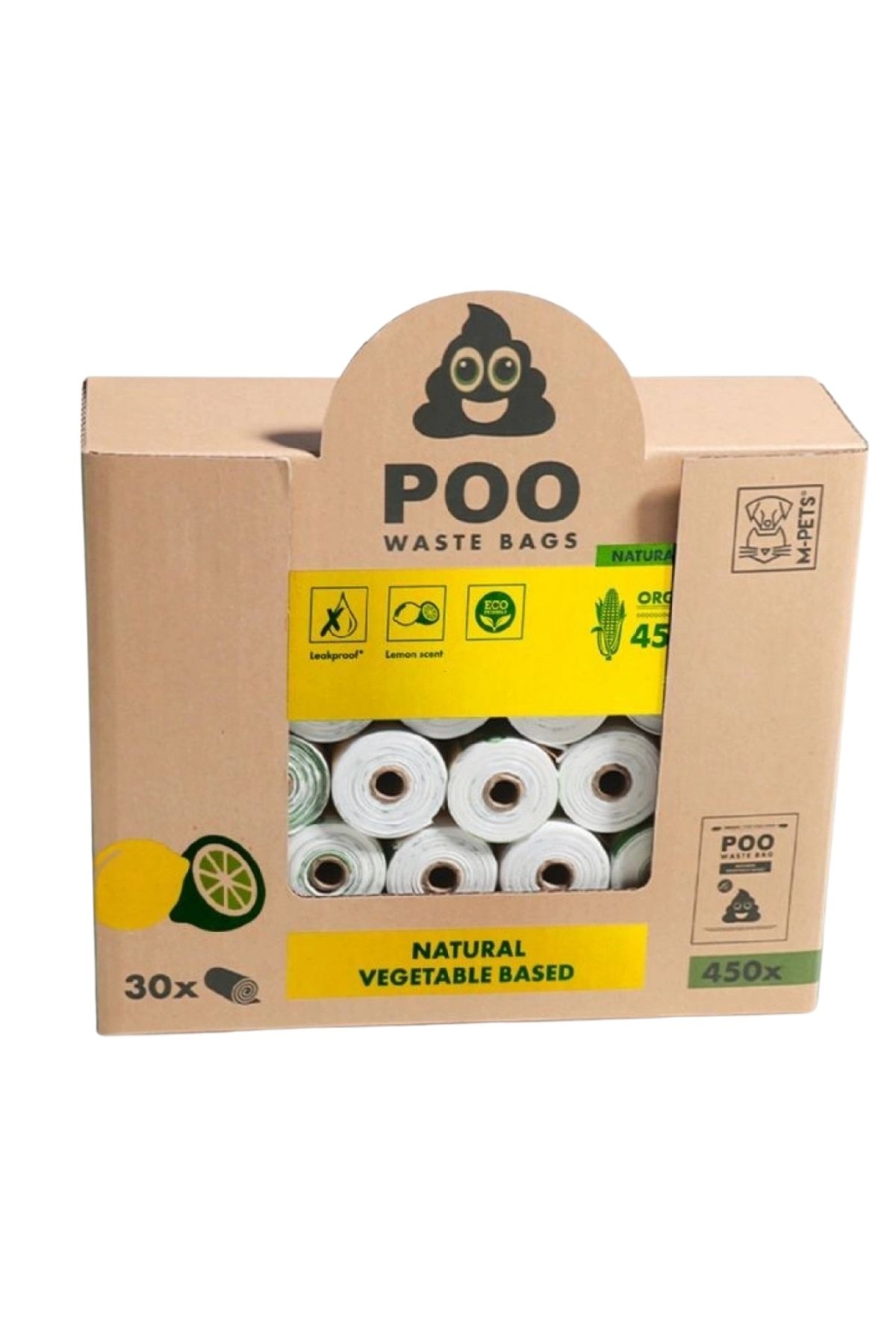 M-Pets poo dışkı toplama poşeti; Limon kokuludur. Biyo mısır nişastası karışımı ile üretilmiştir. Sızdırmaz özelliğe sahiptir. Dışkı toplama poşeti; Bitki bazlıdır. Çevre dostu yapısıyla doğaya zarar vermez. Sağlam ve dayanıklıdır. Ürün görseli temsilidir. 15 yaprak 1 adet rulo olarak satılmaktadır.