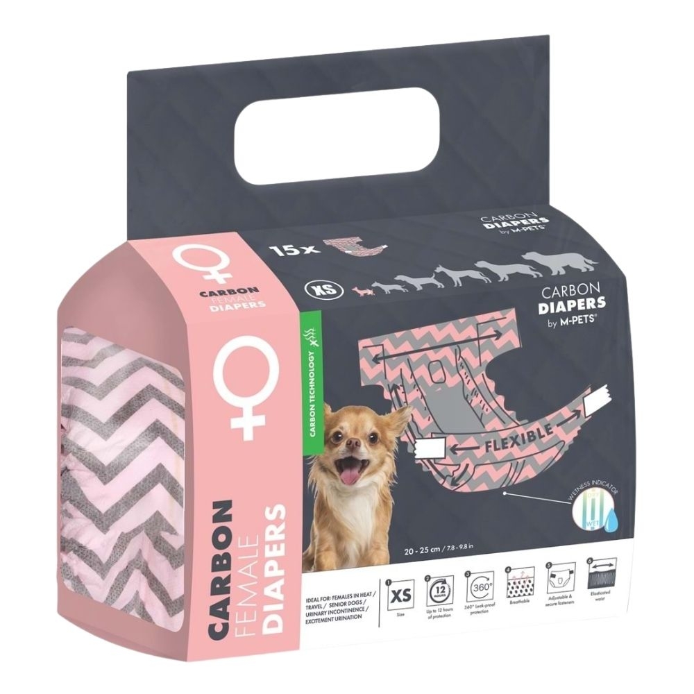 M-Pets Aktif Karbonlu Diapers Dişi Köpekler İçin Külot (XS) 15li