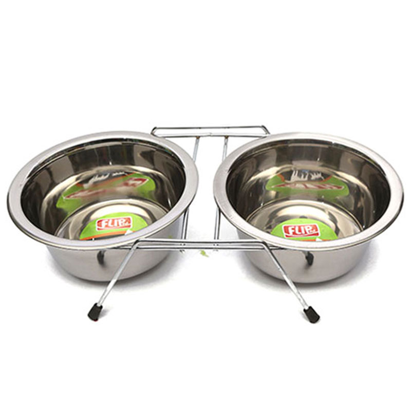 Flip Kedi ve Köpekler için Paslanmaz Çelik İkili Mama ve Su Kabı 2x475ml