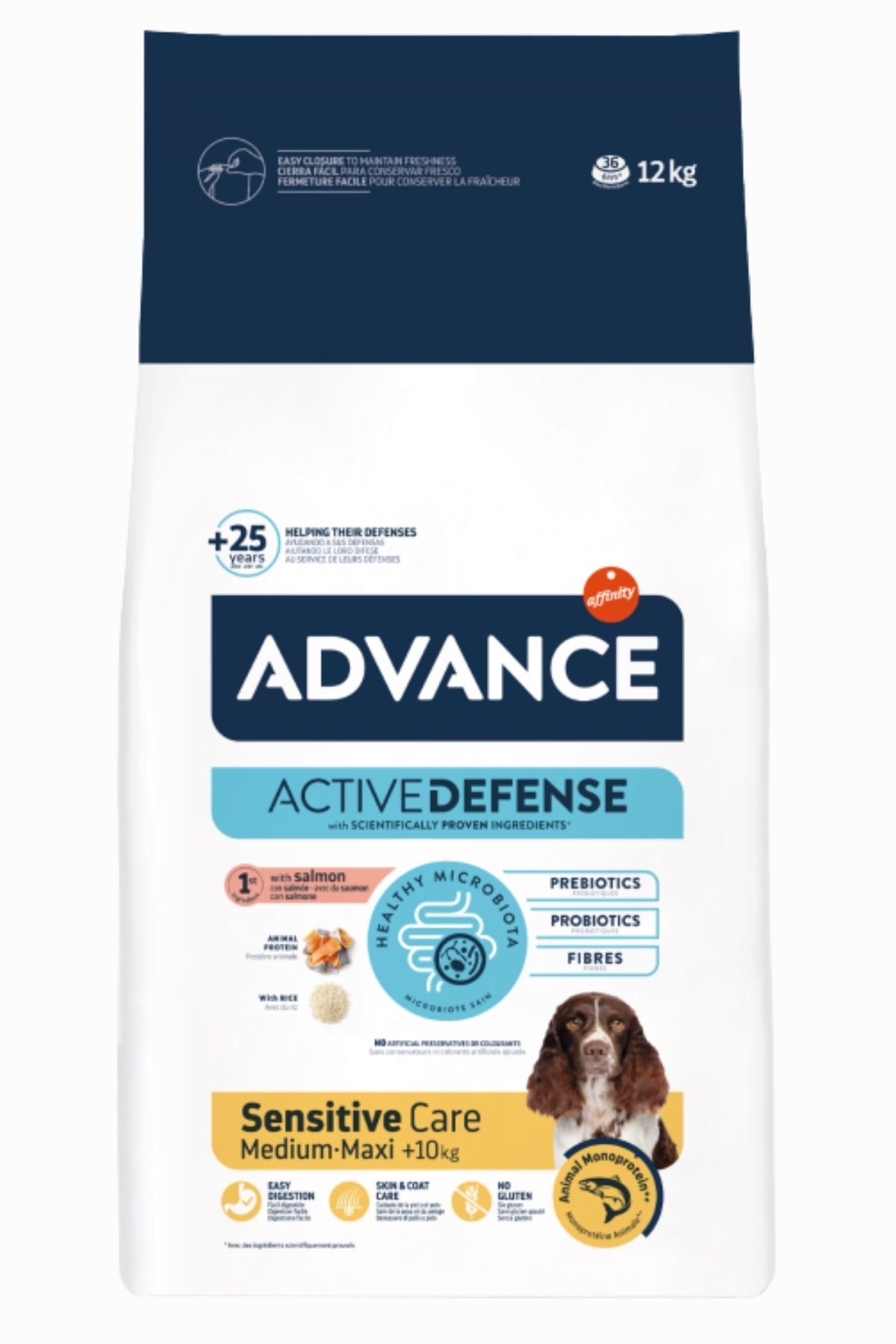Advance somonlu ve pirinçli köpek maması, gıda hassasiyeti olan köpeklere uygun olarak geliştirilmiş ve balık proteinin zengin içeriğiyle formule edilmiş bir mamadır. Soya, buğday ve yumurta gibi gıda hassasiyetleri olan köpeklerde, bu içerikler ürün içerisinde bulunmadığından sıklıkla kullanılmaktadır. Advance orta ırk ve büyük ırk köpek maması, içerdiği somon balığı sayesinde deri ve tüy kalitesine de fayda sağlar. Ayrıca bu mama; orta ve büyük ırk köpeklerin, bedensel aktivitelerini daha kolay ve sağlıklı bir şekilde yapabilmesine olanak sağlar.