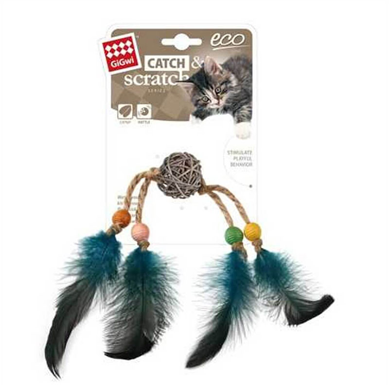 Gigwi Ahşap Toplu Yeşil Tüylü Kedi Oyuncağı