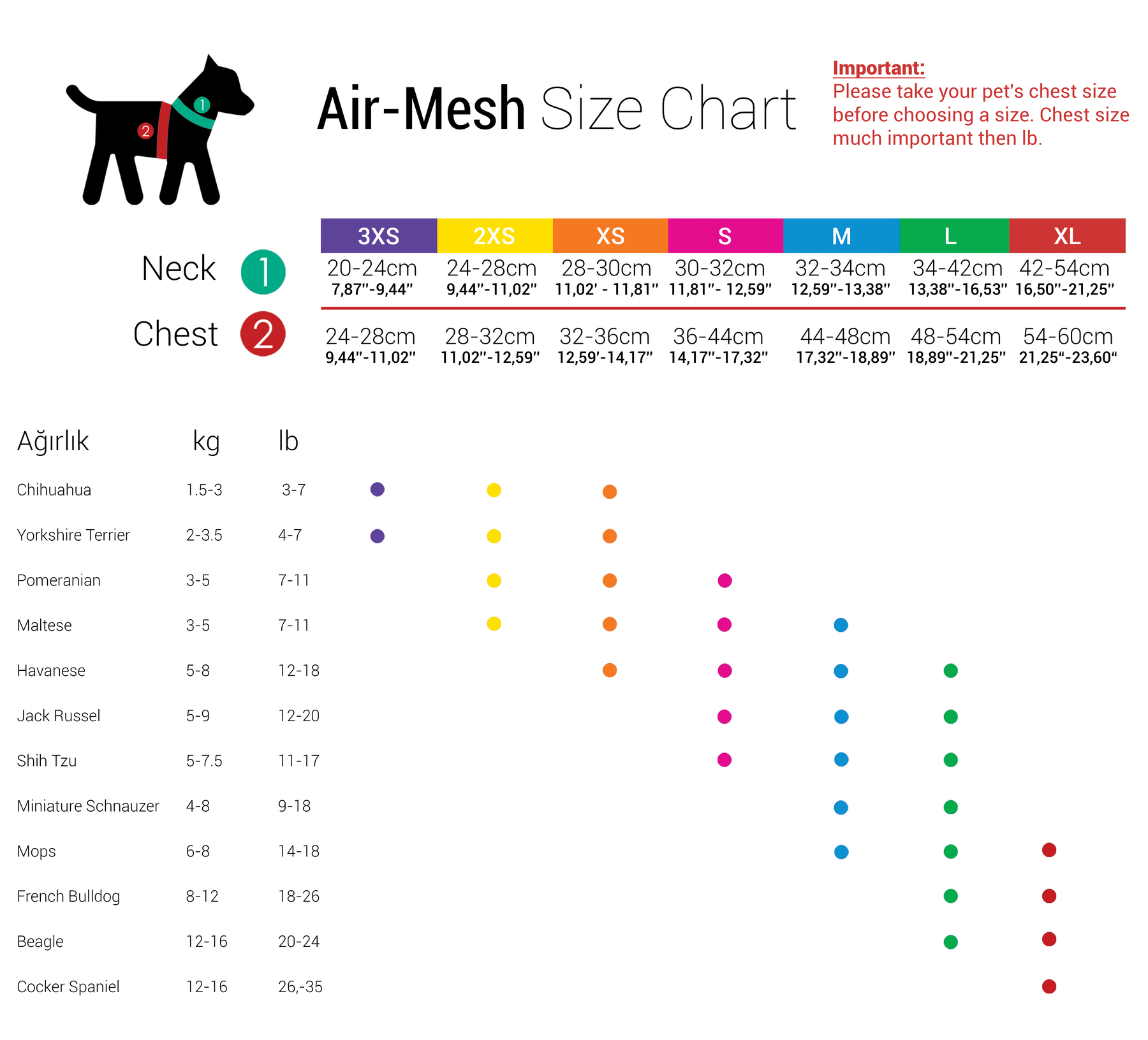 Tailpetz airmesh göğüs tasması; Köpekler için özel olarak tasarlanmıştır. Hafif, rahat ve dayanıklı kumaşa sahiptir. Hava alabilen kumaşı sayesinde yaz aylarında serinletici etkisi bulunmaktadır. Kolay ayarlanabilir özelliktedir. Bu göğüs tasması; boyun zedelenmelerine karşı köpeğinizi korumaktadır.