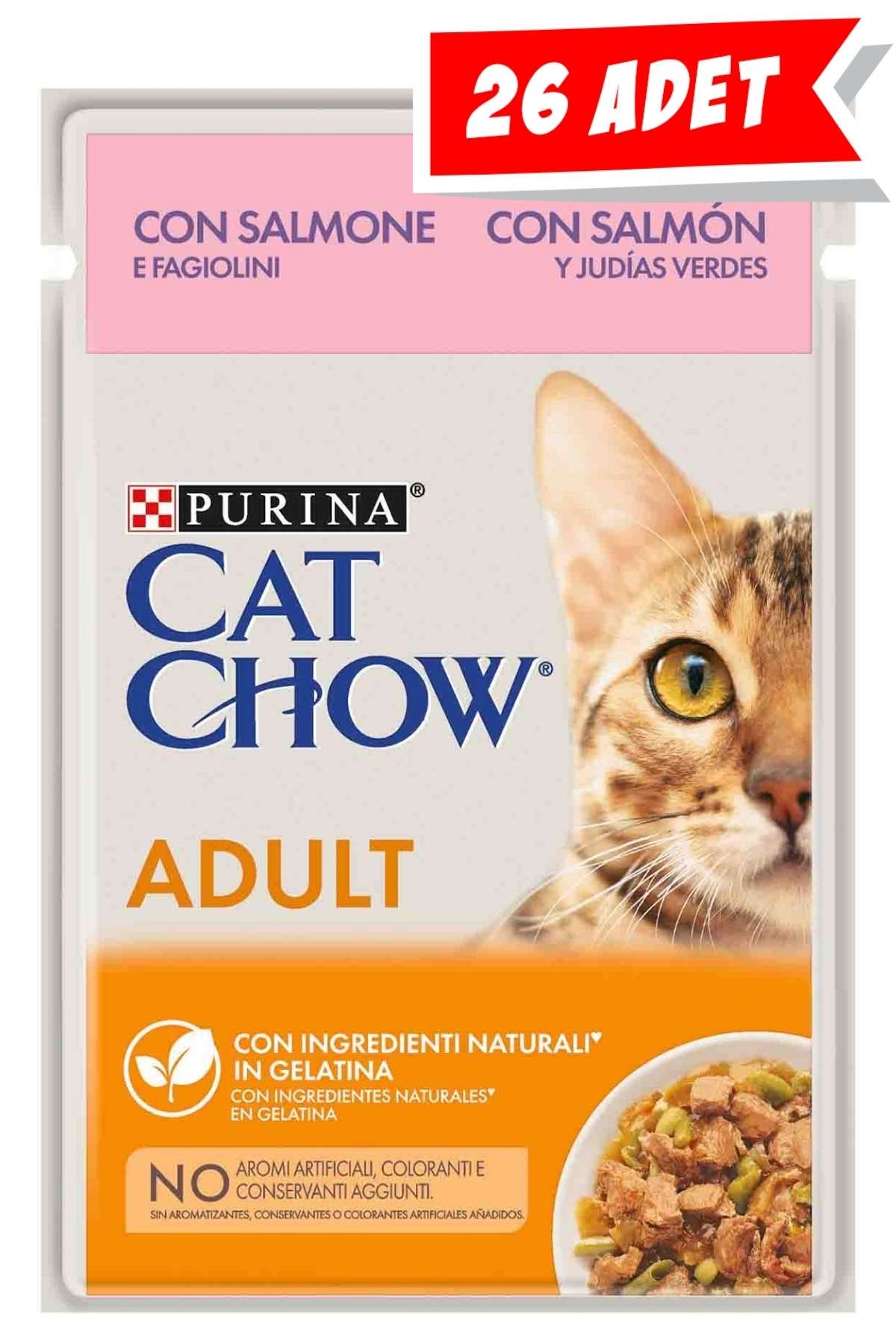 Cat Chow Pouch Jöle İçinde Somonlu ve Yeşil Fasulyeli Yetişkin Kedi Konservesi 26x85gr 26lı