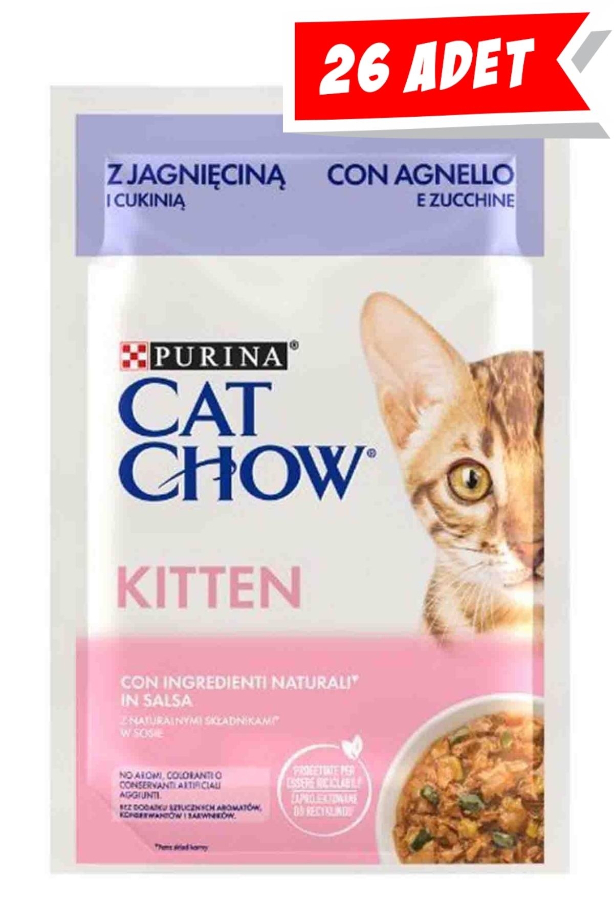 Cat Chow Pouch Sos İçinde Kuzu Etli ve Kabaklı Yavru Kedi Konservesi 26x85gr 26lı