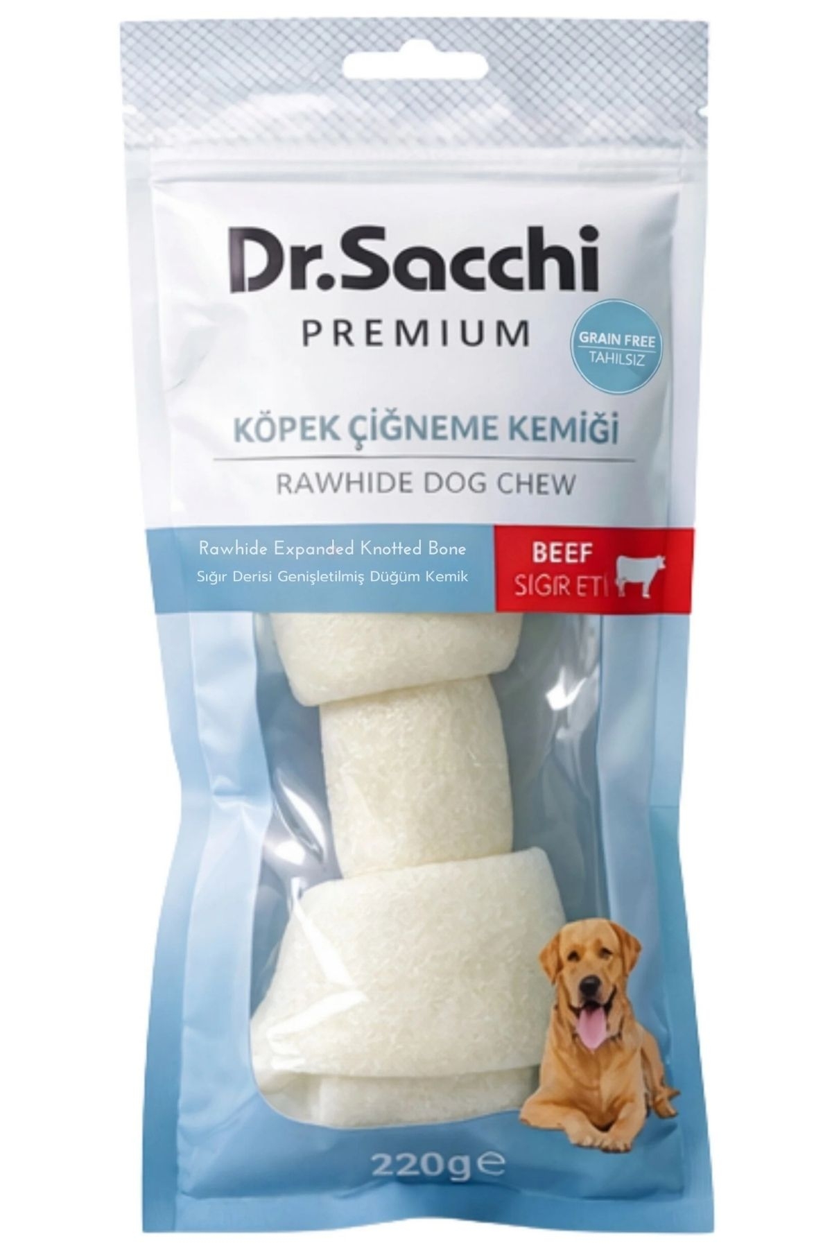 Dr.Sacchi Premium Sığır Etli Düğüm Kemik Tahılsız Köpek Ödülü 220gr