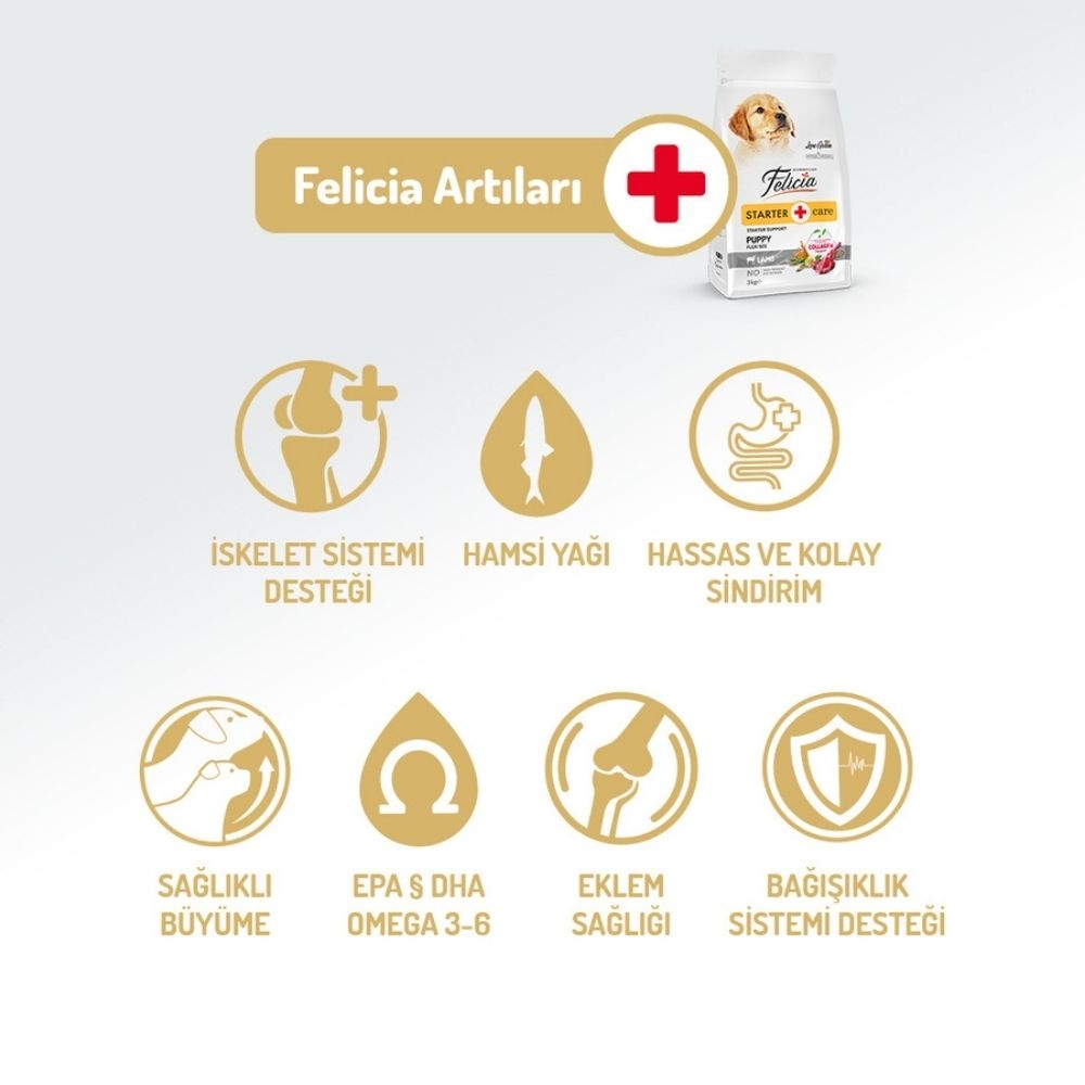 - Felicia Small&Mini Puppy gerçek kuzu etinden gelen optimum seviyede protein kaynağı içermektedir.