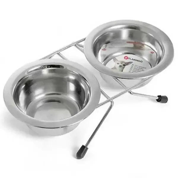 Flamingo Duo Dinner İkili Çelik Köpek Mama Kabı 13cm 2x380ml