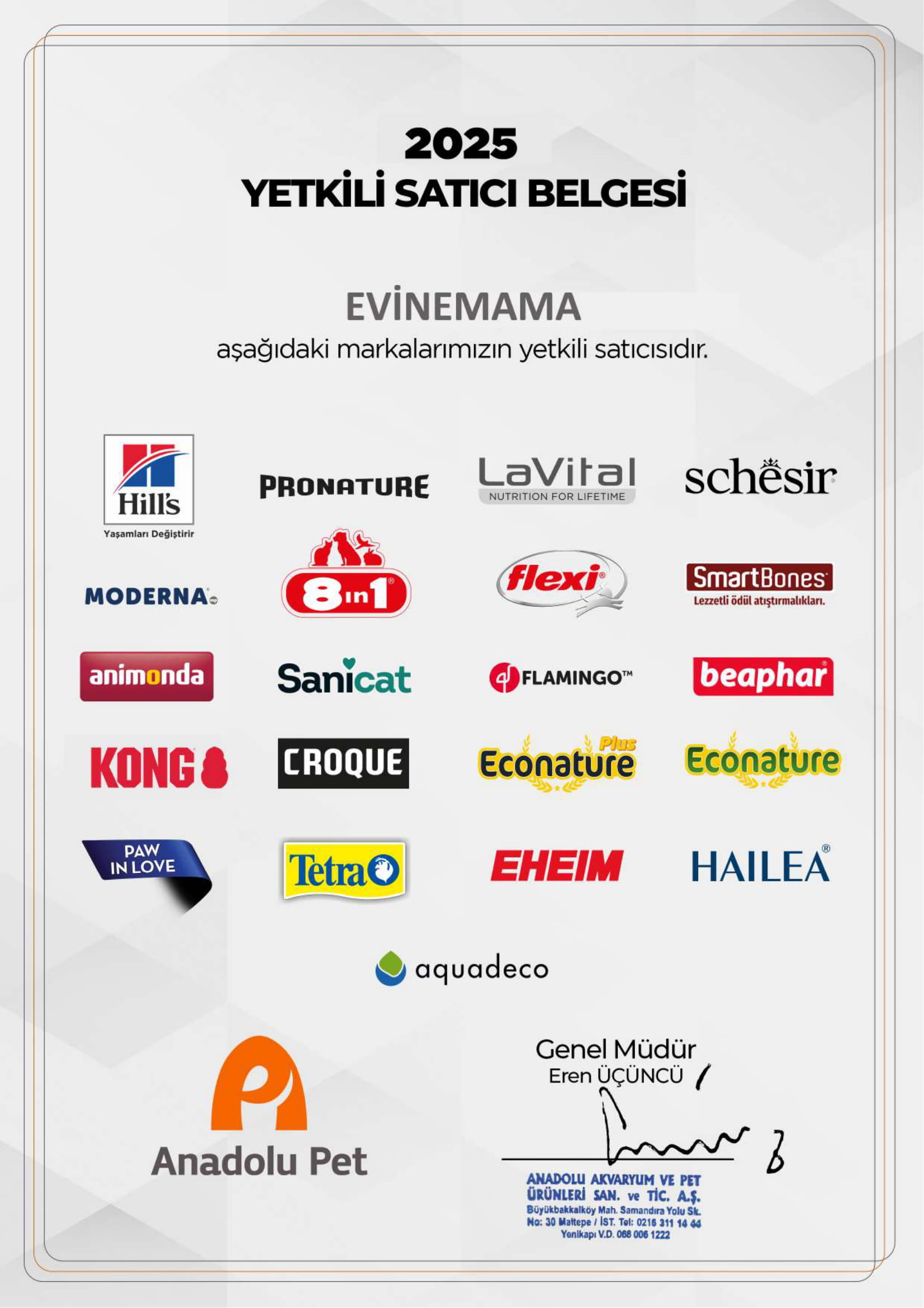 - Firma Adı : Anadolu Akvaryum ve Pet Ürünleri San. ve Tic. A.Ş.