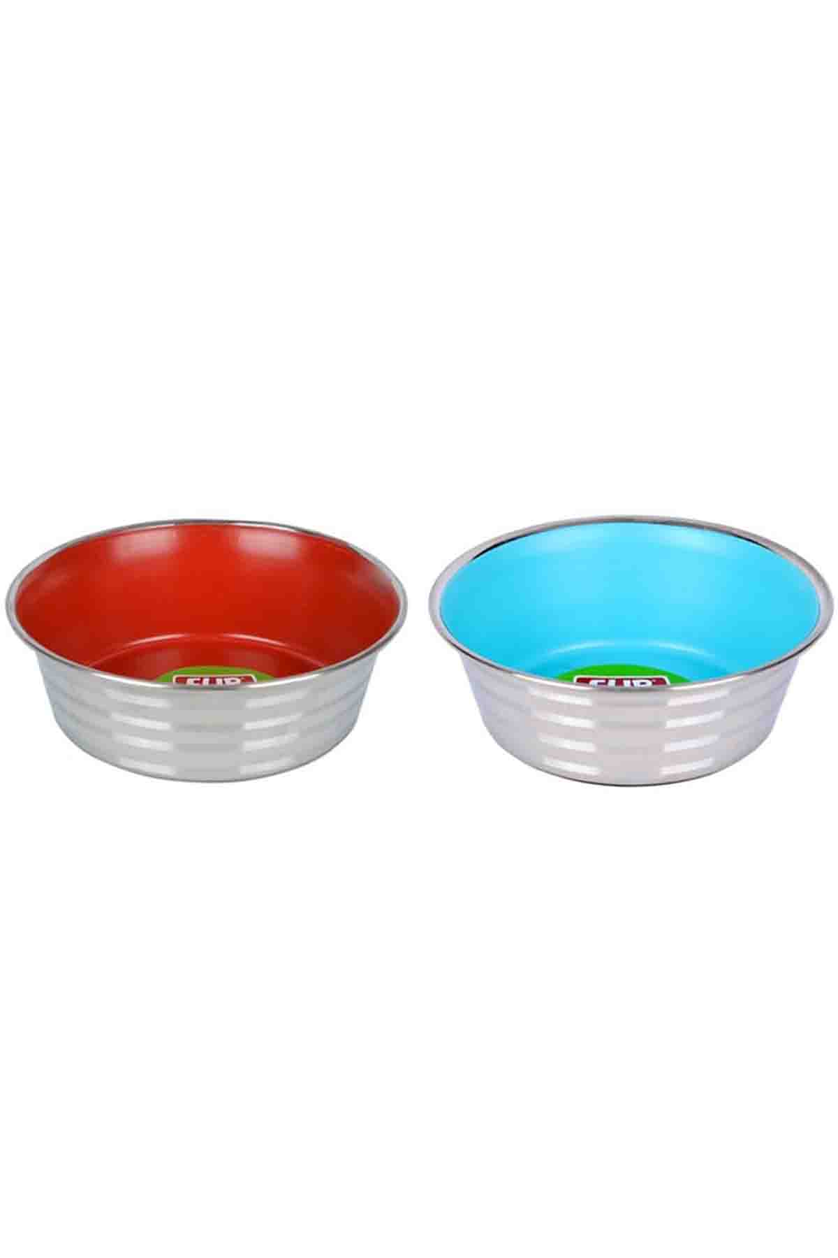 Flip Çizgi Desenli Renkli Silikon Tabanlı Çelik Mama Kabı 11cm