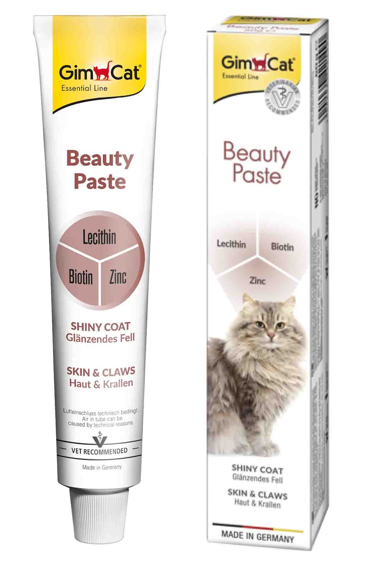 Gimcat beauty deri ve tüy sağlığı için kedi macunu; Sağlıklı deri ve parlak tüy oluşumunu sağlamak için özel olarak formüle edilmiştir. Biyotin ve çinko ihtiyacının giderilmesine destek vermektedir.