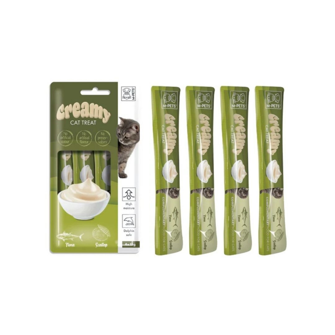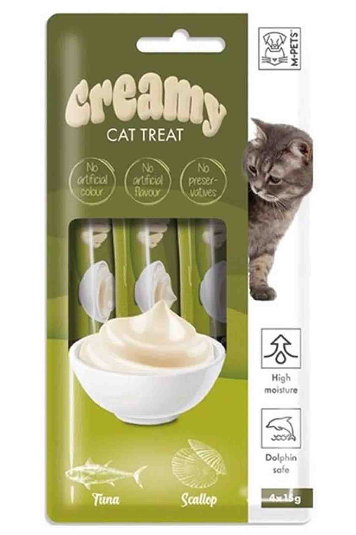 Creamy ton balıklı deniz taraklı kedi ödülü; Kediler için özel olarak formüle edilmiştir. İçeriğinde ton balığı ve deniz tarağı bulunan sıvı ödül mamasıdır. Kedi ödül maması; Renklendirici, koruyucu, aroma içermez. Açıldıktan sonra hemen tüketilmesi önerilmektedir. Günlük mamalarına ek olarak kullanılabilir.