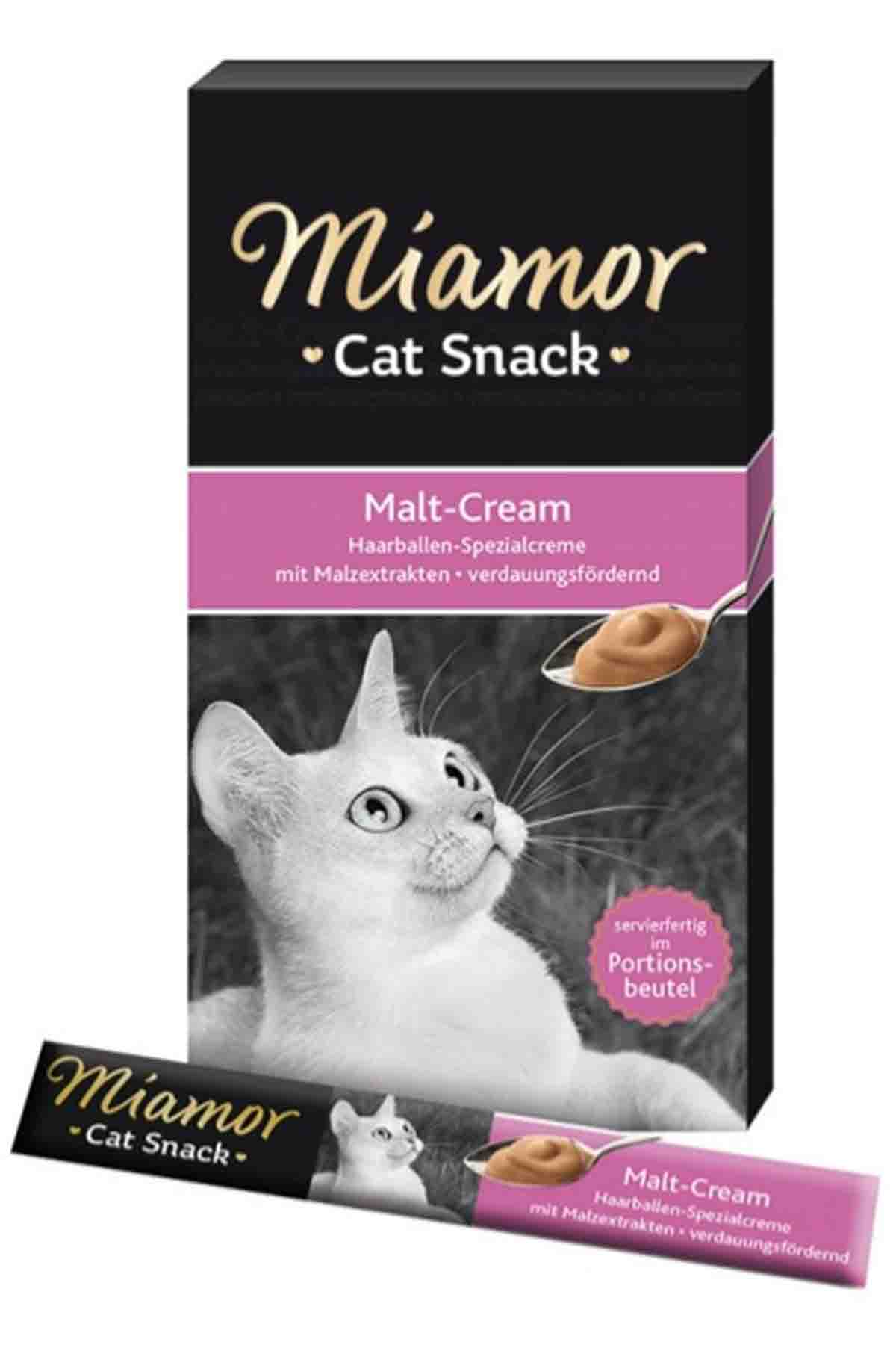 Miamor cream malt kedi ödül maması; Leziz krema içerisinde et,et ürünleri, sebze,sebze ürünleri,süt ve süt ürünleri bulunan tamamlayıcı ödül mamasıdır. Kalorisi düşük olarak üretilmiştir. Şeker, koruyucu ve renklendirici içermemektedir. Tüy topaklarının atılmasına ve sindirime yardımcı olmaktadır.