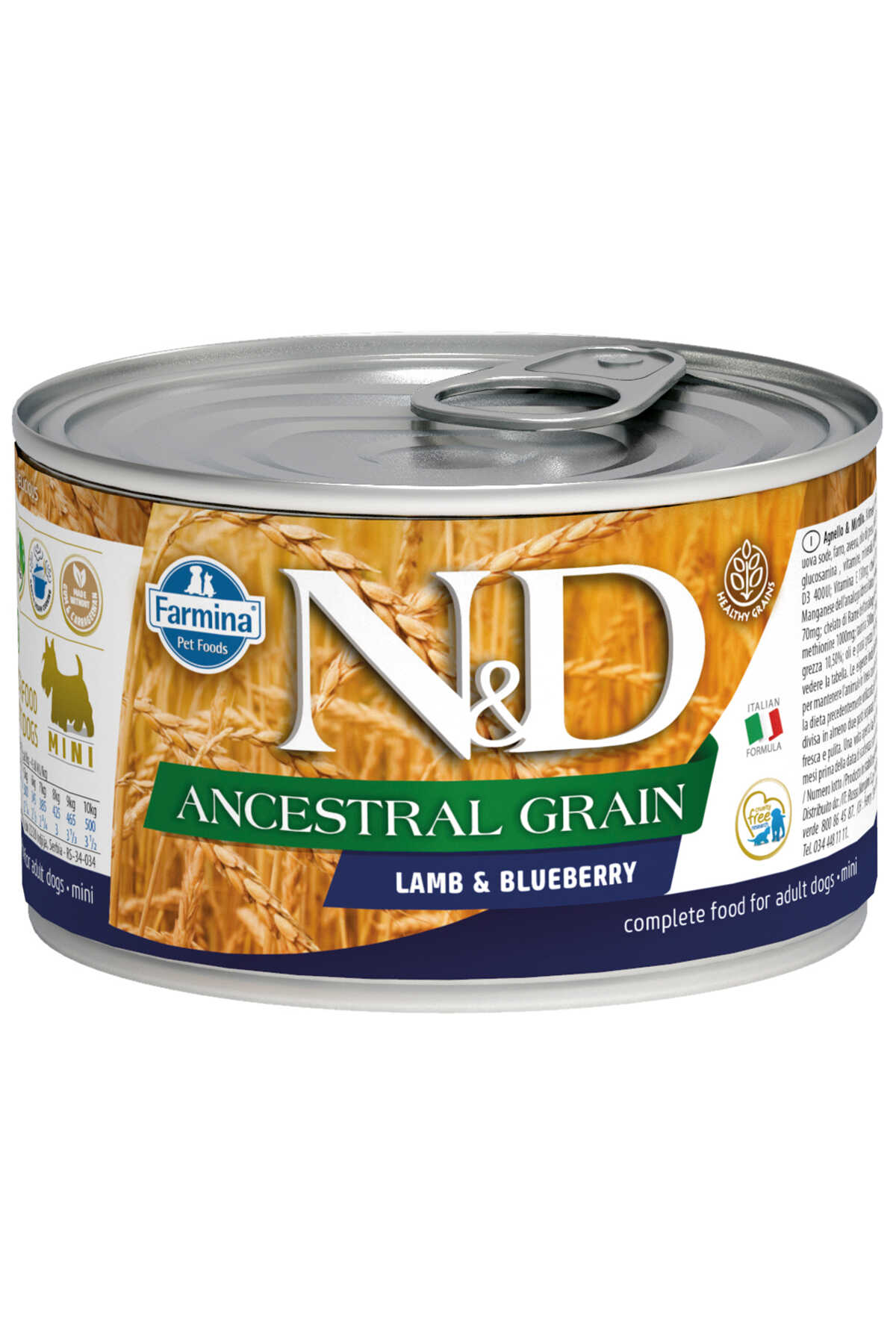 Yetişkin köpekler için formüle edilmiş tam mamadır.İÇİNDEKİLERKuzu gerdan ve omuz eti (%50), ringa balığı, haşlanmış tavuk yumurtası, kılçıksız buğday, yulaf, balık yağı, yaban mersini (%2), fruktooligosakkaritler, kondroitin sülfat, glukozamin, vitaminler, mineraller.KATKI MADDELERİBesinsel katkı maddeleri: A Vitamini 4000IU; D3 Vitamini 400IU; E Vitamini 130mg; kolin klorür 400mg; metiyonin hidroksilaz analoğunun çinko şelatı 200mg; metiyonin hidroksilaz analoğunun manganez şelatı 40mg; glisin hidratın demir şelatı 72mg; metiyonin hidroksilaz analoğunun bakır şelatı 16mg; inaktive edilmiş selenize maya 1.10mg; DL-metiyonin 1000mg; taurin 500mg; L-karnitin 50mg.ANALİTİK BİLEŞENLERNem %75.00; ham protein %10.50; ham yağ %7.00; ham lif %1.00; ham kül %3.10.BESLENME YÖNTEMLERİTabloya bakınız. Bireysel ihtiyaçlar, vücut ağırlığı ve vücut sağlığına göre farklılıklar göstermektedir ve bu nedenle beslenme ihtiyacına göre günlük miktarı ayarlamak gerekir. Başlangıçta N&D konservenin, köpeğinizin daha önce kullandığınız mama ile karıştırılması önerilir. Lütfen oda sıcaklığında servis ediniz. Her zaman dostunuz için taze ve temiz su bulundurunuz. Açıldıktan sonra buzdolabında saklayınız ve 48 saat içerisinde tüketiniz. Önerilen son kullanma tarihinden 36 ay önce üretilir. Net Ağırlığı/ Son kullanma tarihi/ LOT Numarası/ Üretim Beyan Numarası için konservenin altına bakınız. Önerilen son kullanma tarihi konservenin üzerinde yer almaktadır. "Ürün Özellikleriİçerik:Kuzu Etli, Yaban MersinliIrk Boyutu:Ürün Ağırlığı:Fiyat Aralığı: