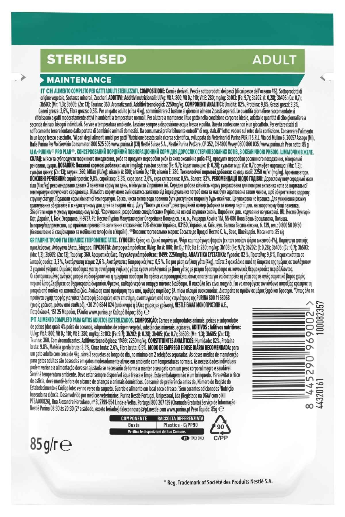 Pro Plan Jelly Pouch Okyanus Balıklı Kısırlaştırılmış Yetişkin Kedi Konservesi 85gr