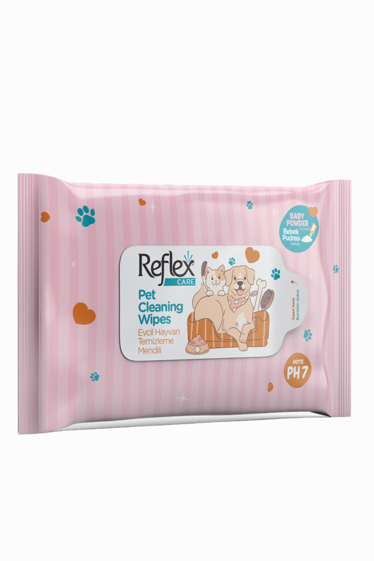 Reflex Care Bebek Pudrası Kokulu Evcil Hayvanlar İçin Çok Amaçlı Hijyenik Temizleme Mendili 10lu