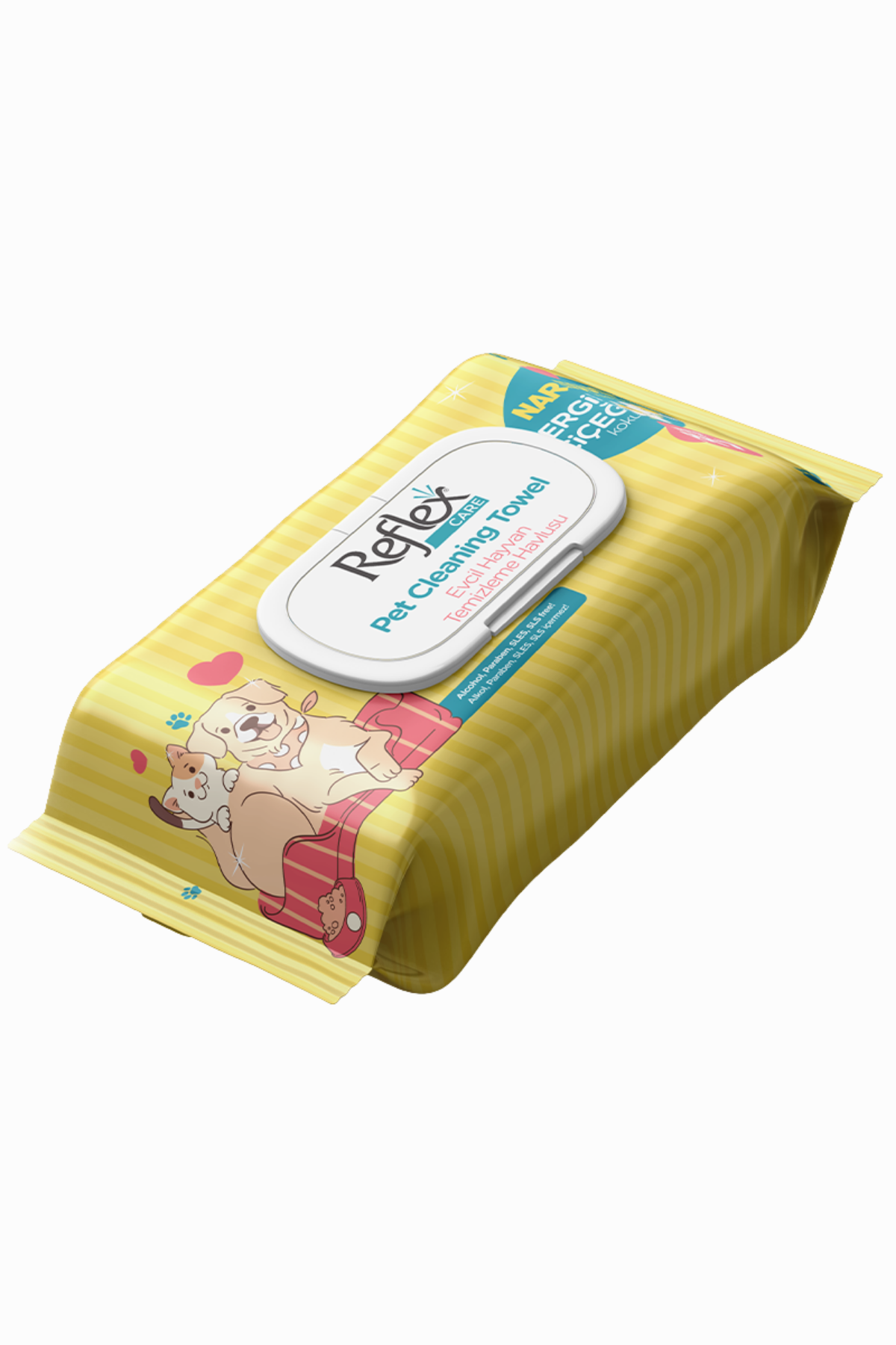 Reflex Care Nergis Kokulu Kedi ve Köpekler İçin Çok Amaçlı Hijyenik Temizleme Mendili 50li