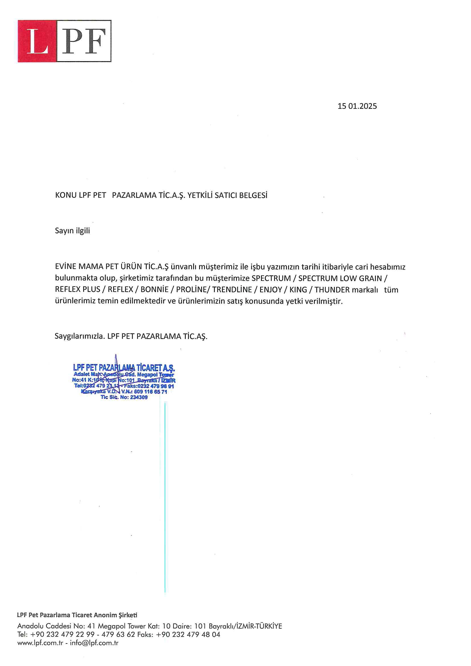 - Firma Adı : LPF Pet Pazarlama Tic. A.Ş.