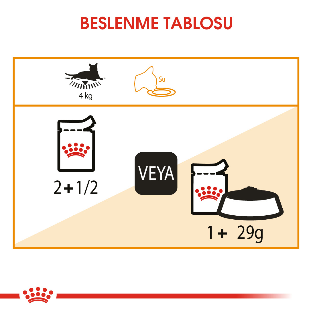 Royal canin hair&skin gravy kedi konservesi; Yetişkin kediler için özel olarak formüle edilmiştir. Sos içinde et parçacıklarıyla kombine edilmiştir. Kedi konservesi; İçeriğinde yer alan omega 3-6 yağ asitleri sayesinde tüy sağlığına yardımcı olur. İdeal kilo korunmasını destekler. Üriner sistem sağlığını korur.