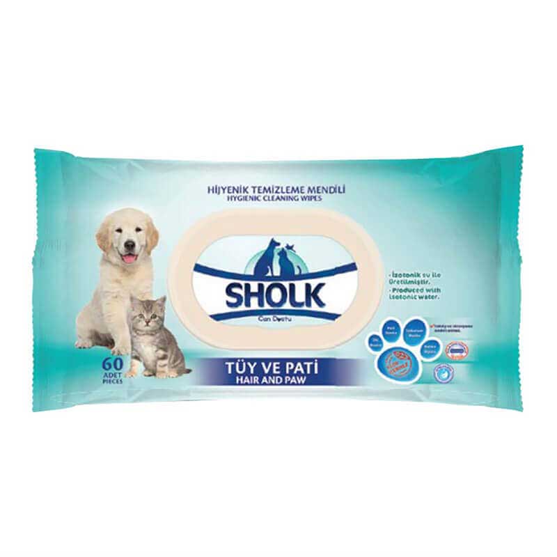 Sholk Hipoalerjenik Hijyenik Tüy ve Pati Temizleme Mendili (60lı)
