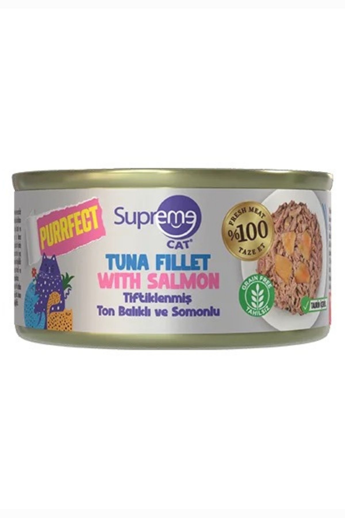 Supreme Purrfect Tiftiklenmiş Ton Balıklı ve Somonlu Yetişkin Kedi Konservesi 70gr