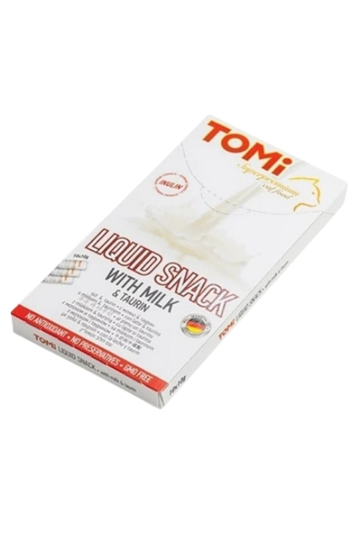 Tomi sütlü ve taurinli kedi kreması; Kediler için özel olarak formüle edilmiştir. Süt ve taurin kombine edilerek üretilmiştir. Kedi ödül maması; Krema şeklindedir. Yapısından kaynaklı yavru, yetişkin ve yaşlı kedilerin rahat tüketmesi için uygundur. Paket içerisinde 10gr ağırlığında 10 adet ödül maması bulunmaktadır.