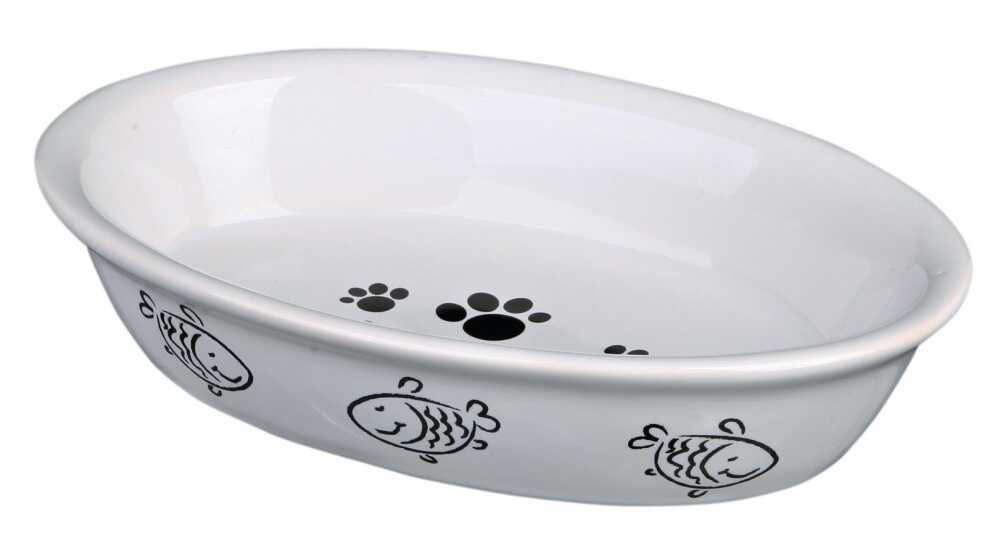 Bu porselen mama ve su kabı kediler için ideal ve çok kullanışlıdır. Aynı zamanda değişik tasarımı sayesinde farklı ve dekoratiftir. Dış tarafında balık figürleri iç tarafında pati dekoru bulunmaktadır.