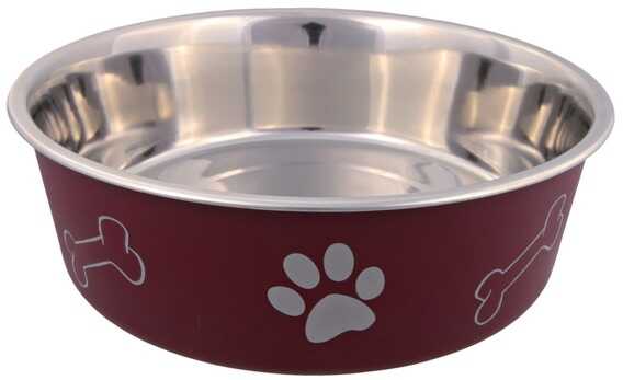 Paslanmaz çelik dışı renkli plastik kaplı mama ve su kabıdır. altındaki kauçuk sayesinde kullanım sırasında kaymaz.