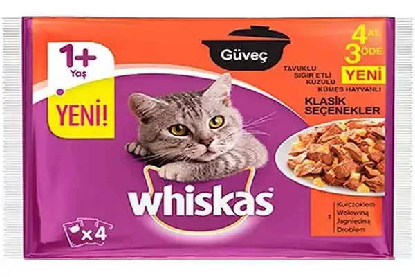Whiskas Pouch Güveç Et Çeşitli Yetişkin Kedi Konservesi 4x85gr (4lü)