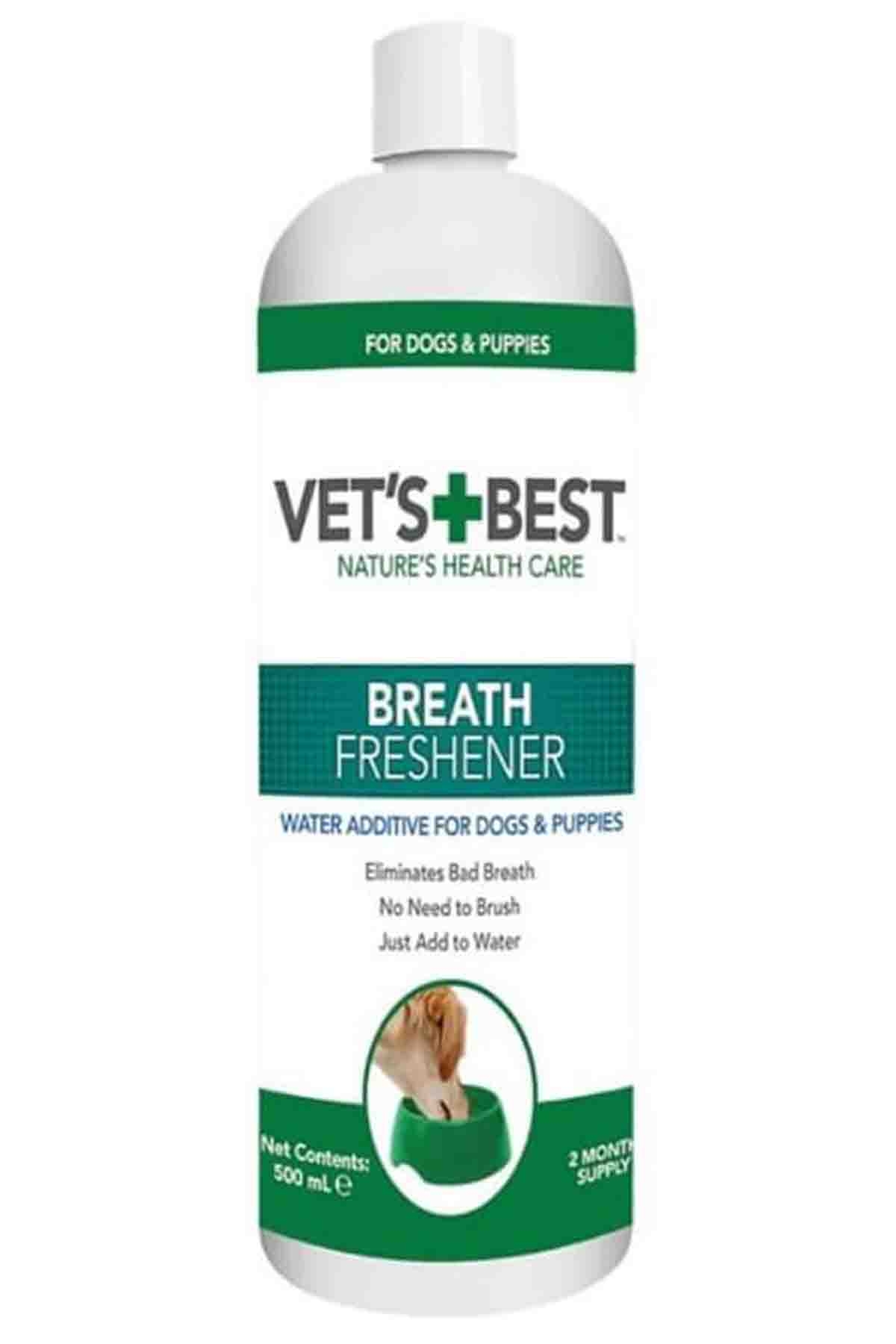 Vet's Best köpek ağız bakım suyu; Düzenli kullanıldığı takdirde köpeğinizin ağzında oluşan kötü kokunun giderilmesine yardımcı olmaktadır. Fırçalama yapmadan kullanılabilir. Köpek ağız bakım suyu; Köpeğinizin su kabına eklenerek kullanılması önerilmektedir.