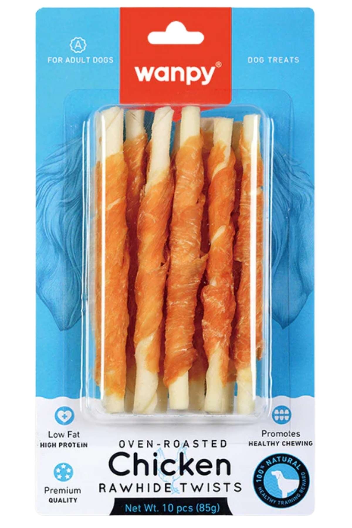 Wanpy Deri Üzerine Tavuk Sargılı Burgu Köpek Ödül Çubuğu 85gr