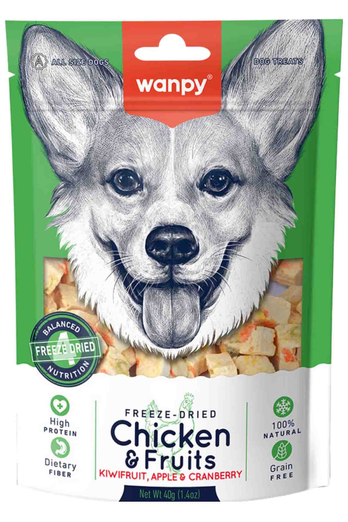 Wanpy Dondurularak Kurutulmuş Tavuk ve Meyveli Köpek Ödülü 40gr