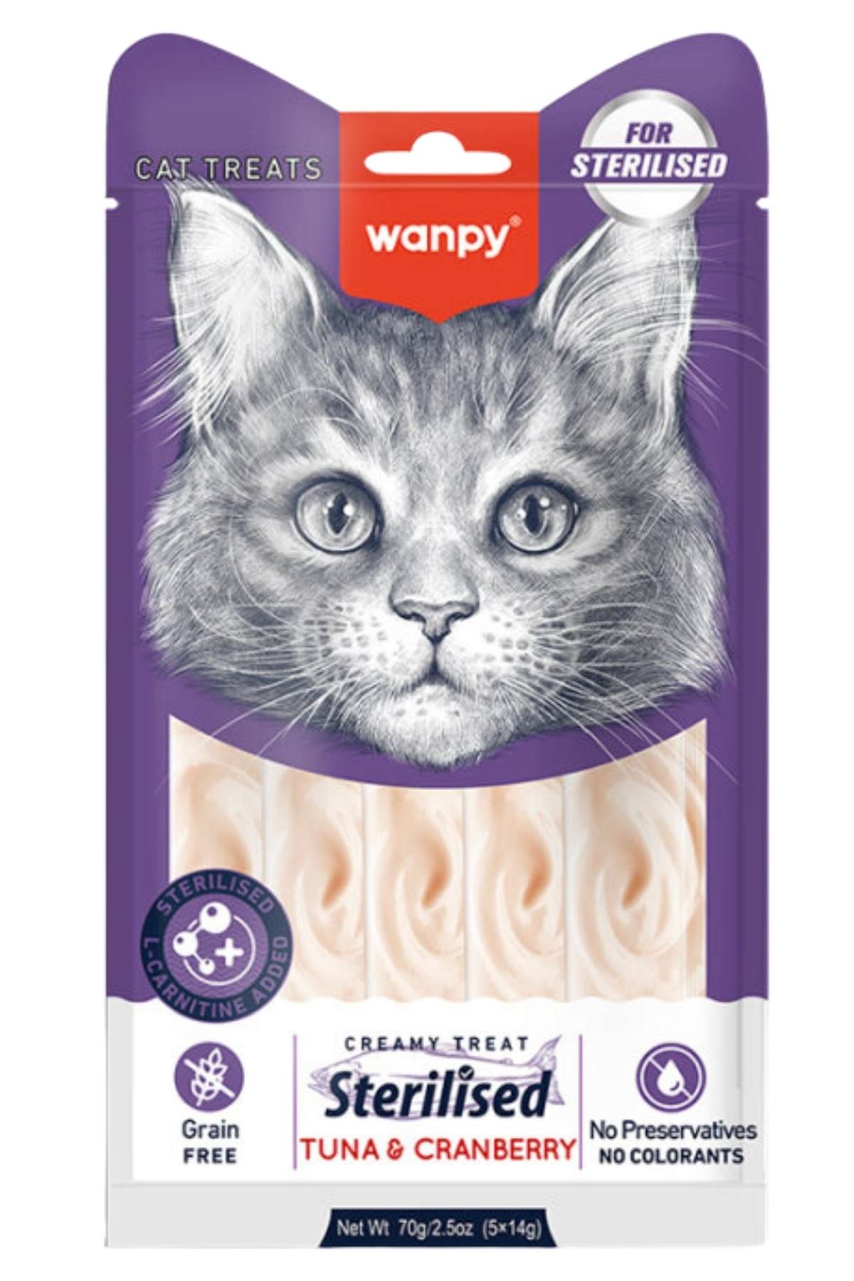 Wanpy Ton Balıklı ve Kızılcıklı Kısırlaştırılmış Kedi Krema Ödülü 5×14gr